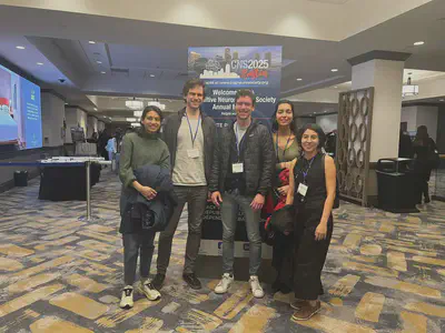 The lab at the Cognitive Neuroscience Society in Boston! Isabel, Neha, Gabriela, Jonas and Randolph attended CNS2025 and showed new forthcoming work. Stay tuned for the papers.